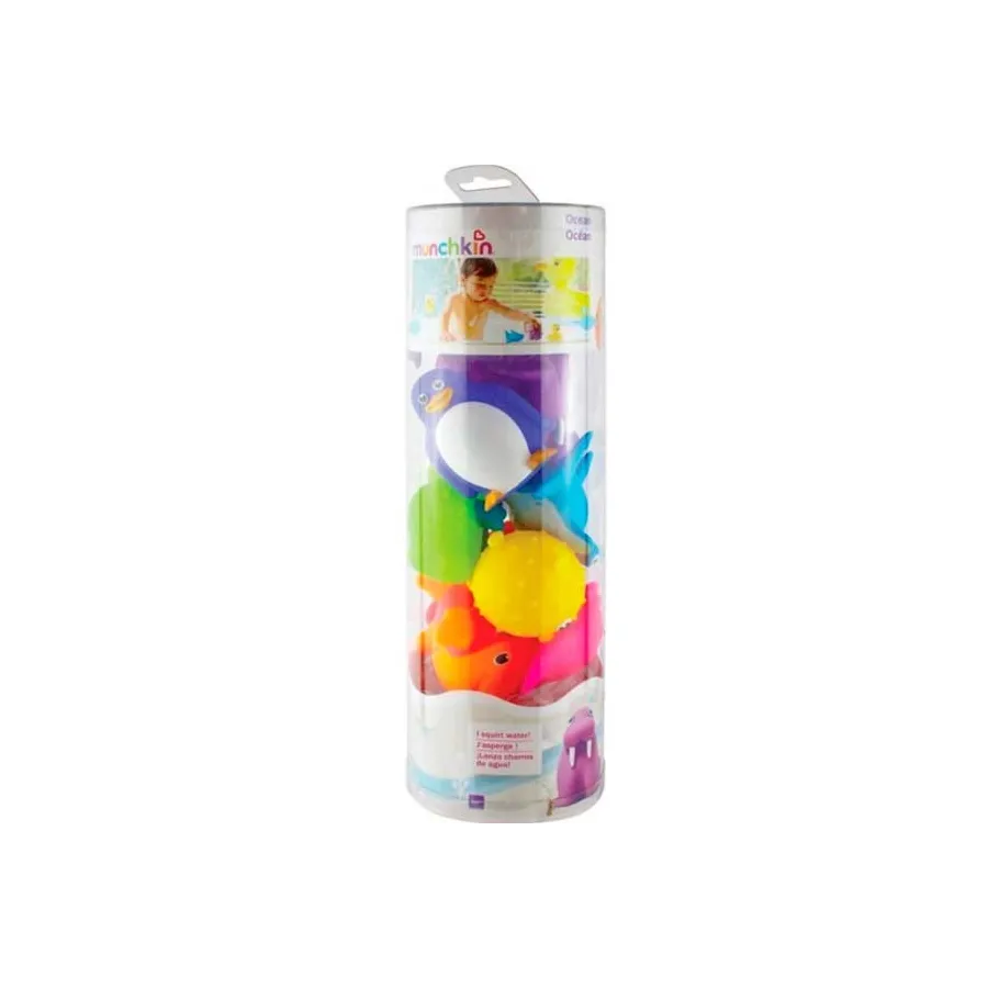 Divertidos Juguetes de Baño lanzachorros, con motivos de Animalitos Marinos de Munchkin harán del baño de tu peque un momento de máxima diversión. El set está compuesto de 8 animalitos lanzachorros con motivo marino, por su diseño pueden flotar, lanzar chorros de agua, tienen el tamaño perfecto para que sus manitas los puedan agarrar y apretar.