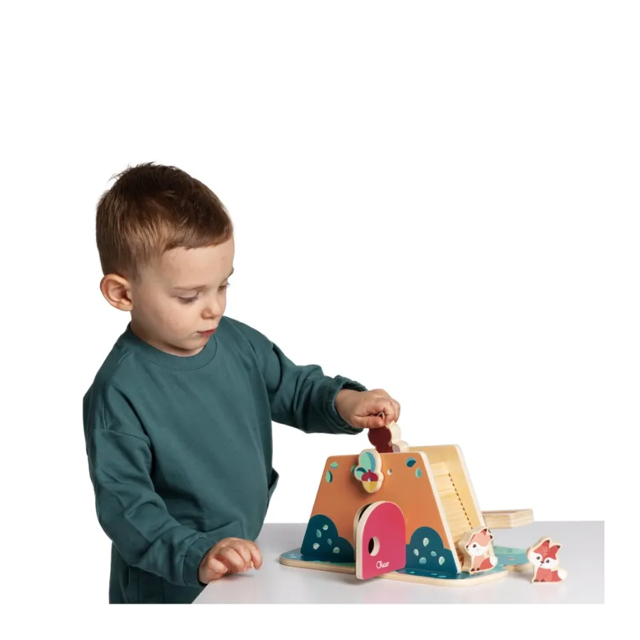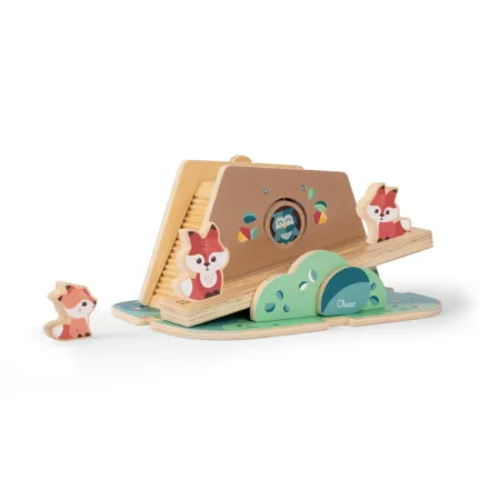 Gracias a sus piezas móviles y de encaje, tu bebé mejorará su precisión, fuerza y coordinación, mientras se divierte con los zorritos. Además, el uso de materiales naturales aporta una textura agradable al tacto.