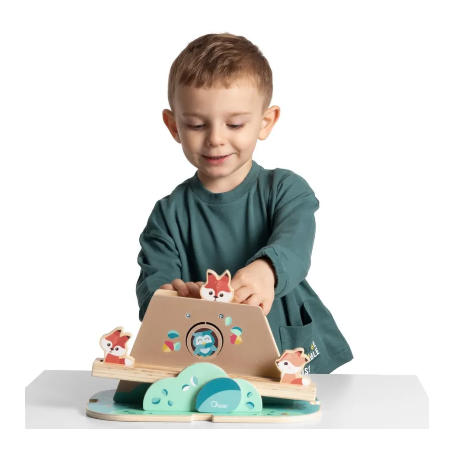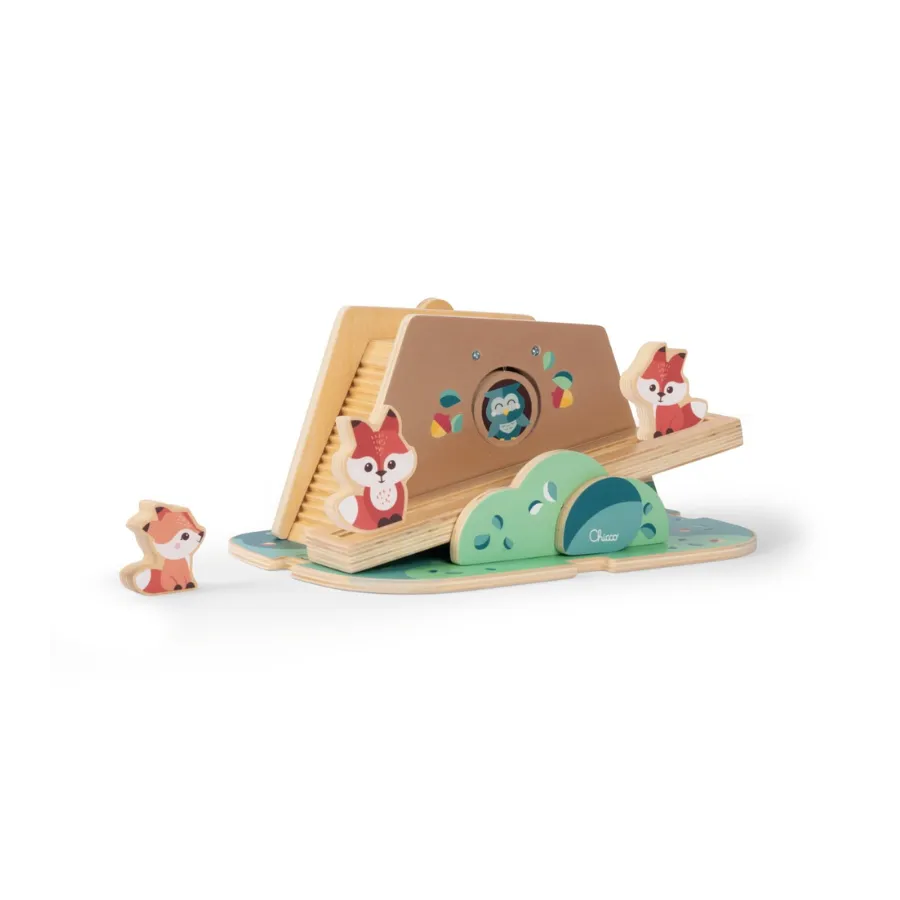 “La pradera de los zorros” de Chicco es mucho más que un juguete. Esta preciosa colección forma parte de la línea My Wood Friends, una gama de juguetes fabricados con madera sostenible, pensados para el desarrollo sensorial y el juego libre.