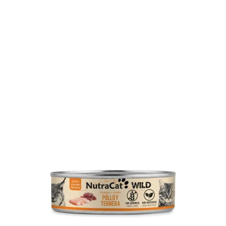 Alimento húmedo 100% natural de pollo y ternera para gatos NutraCat WILD. 80 g
