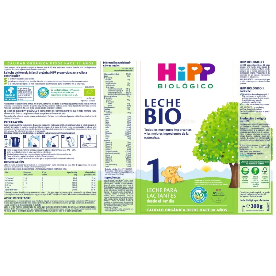 Composición de la Leche 1 para Lactantes Bio HIPP