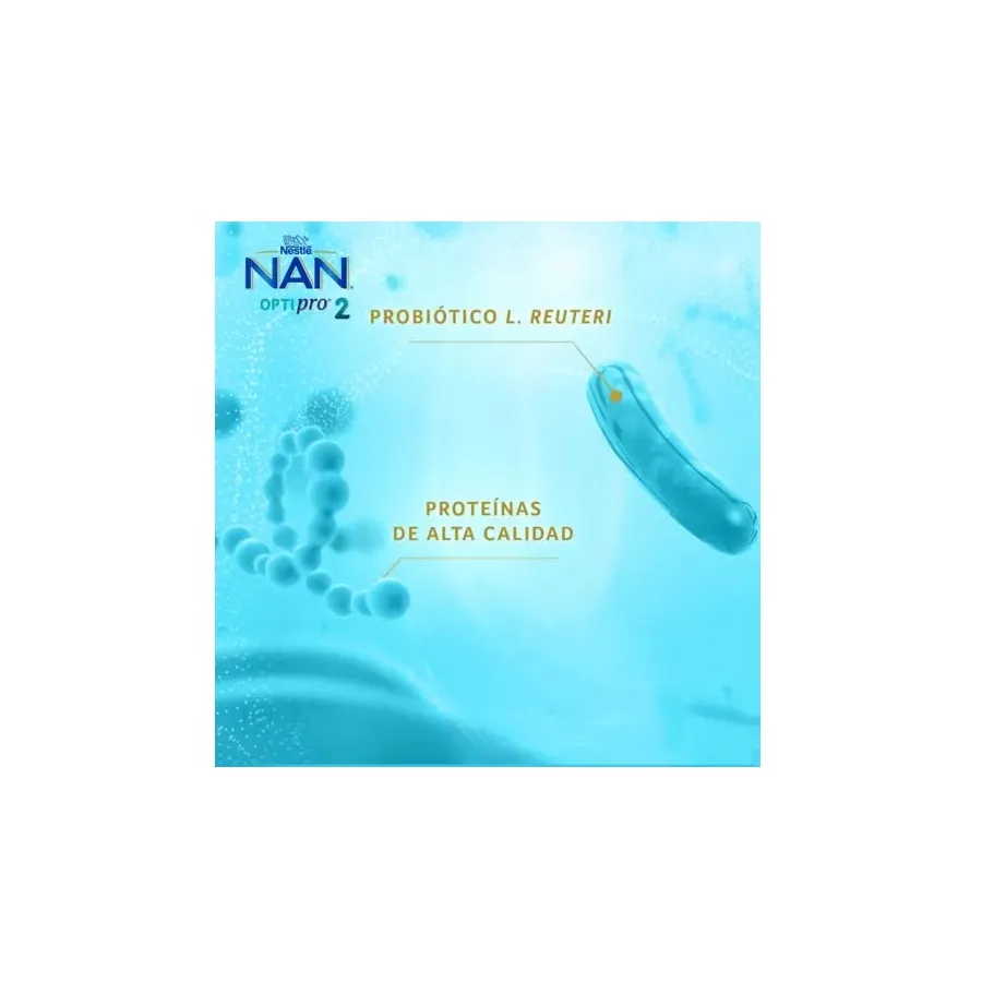 NAN OPTIPRO 2 de Nestlé es la opción perfecta para brindar a tu bebé una alimentación equilibrada y nutritiva. ¡Asegura su bienestar y desarrollo con cada biberón!