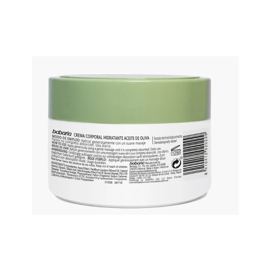 La crema corporal con aceite de oliva de Babaria es la aliada perfecta para combatir la sequedad y la tirantez. Gracias a las propiedades hidratantes y nutritivas del aceite de oliva obtendrás una piel luminosa, suave y flexible fácilmente. Recomendada para el uso diario, cuenta con una textura ligera de fácil absorción y aporta un agradable aroma. ¡A un SUPER PRECIO en Más Pañales!