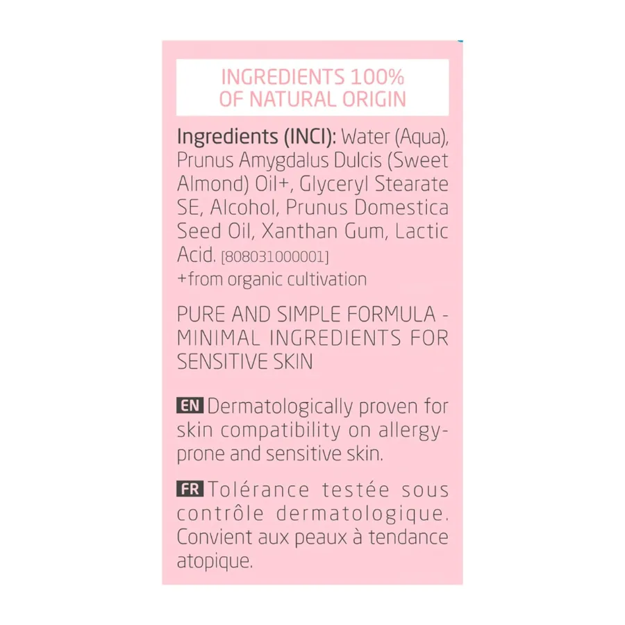 Esta leche limpiadora sin perfume está especialmente pensada para calmar, proteger y limpiar pieles reactivas, secas o con tendencia a la irritación. Su fórmula natural, enriquecida con aceite de almendra dulce y aceite de hueso de ciruela, actúa como un bálsamo en cada aplicación. Cuida tu piel con ternura y confianza, incluso durante el embarazo o la lactancia.