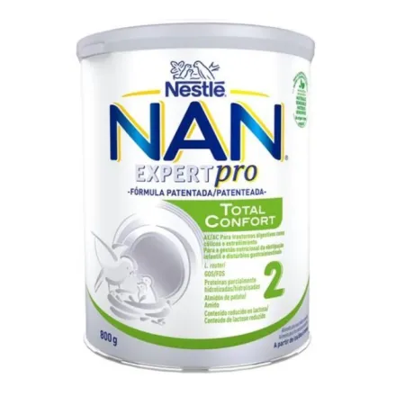 NAN® TOTAL CONFORT 2 es un alimento para usos médicos especiales, especialmente diseñado para el manejo de trastornos digestivos leves tales como cólicos o estreñimiento.