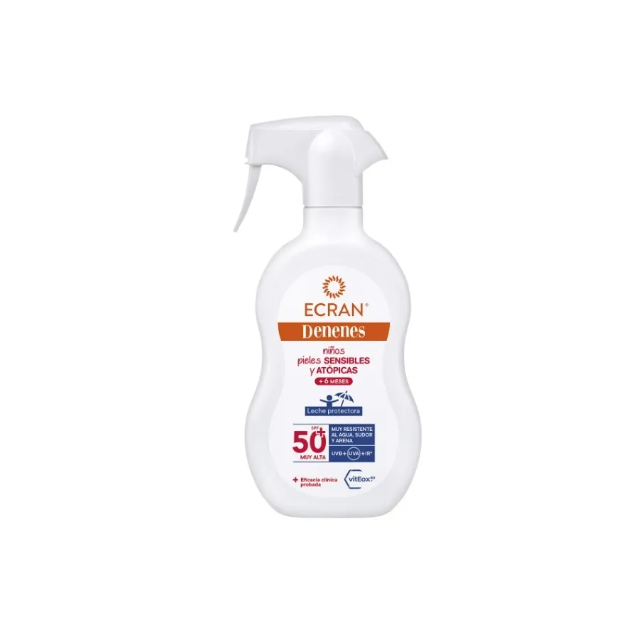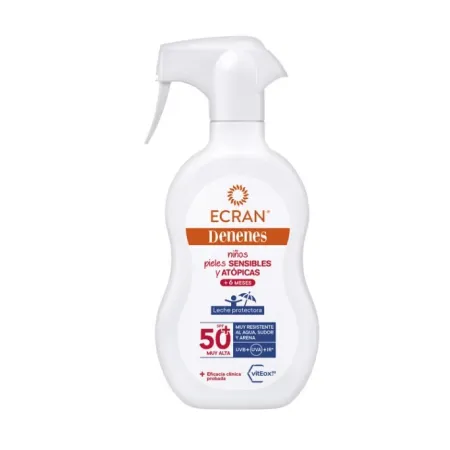 Con la leche protectora infantil para pieles sensibles y atópicas de Ecran Denenes no sólo lo protegerás de los rayos solares, sino que cuidaras su piel gracias a la fórmula enriquecida con activos que refuerzan las defensas y los antioxidantes. La gama Ecran Denenes ha sido pensada para proteger y cuidar las pieles más reactivas y atópicas frente a la radiación solar ofreciendo un extra de cuidado.