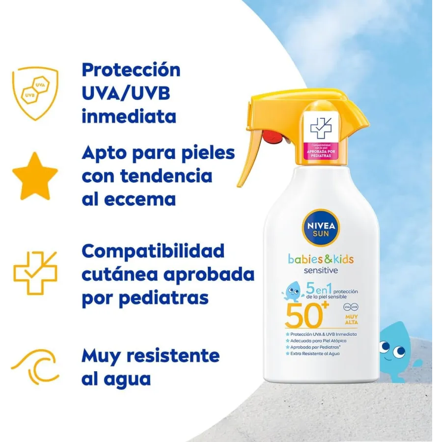 Leche solar infantil piel sensible SPF 50+ Pistola (270ml). Nivea