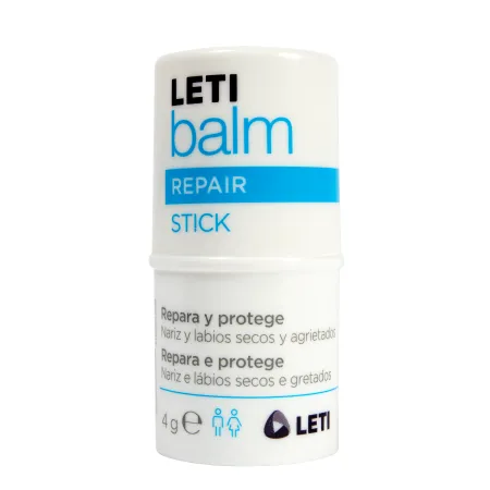 LETIbalm Stick 4g es un bálsamo labial en formato stick, diseñado específicamente para hidratar, proteger y reparar nariz y labios secos o agrietados. Su fórmula está pensada para pieles sensibles y es perfecta para combatir las agresiones externas como el frío, el viento o la sequedad ambiental.