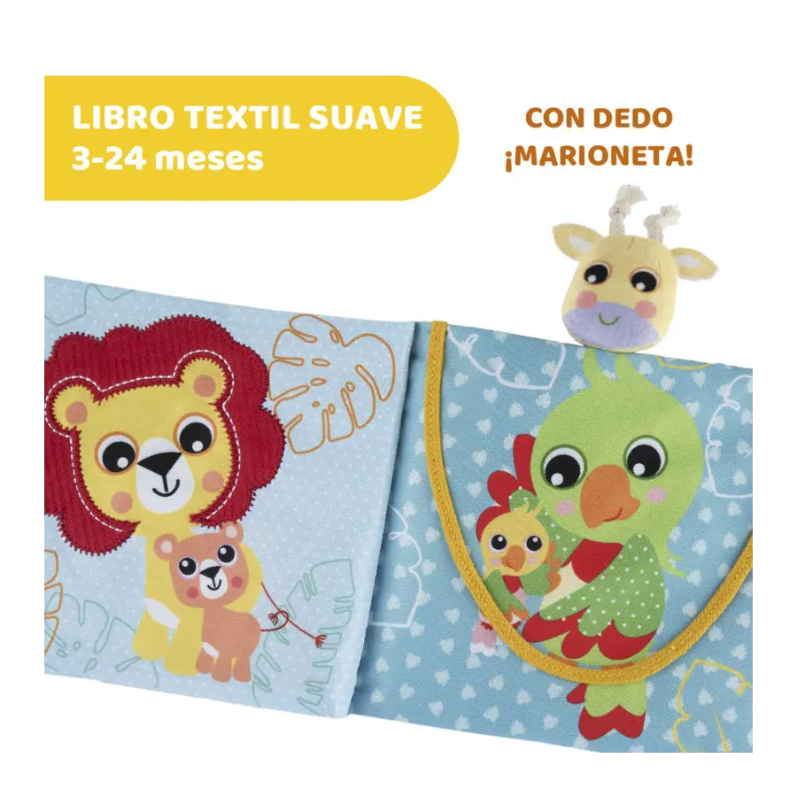 El Libro de los animales. Chicco no es solo un juguete, sino una herramienta de aprendizaje y diversión diseñada especialmente para bebés a partir de 6 meses. Este libro de tela interactivo presenta diferentes texturas, colores vivos y una divertida marioneta de jirafa, ideal para captar la atención del niño desde el primer momento.