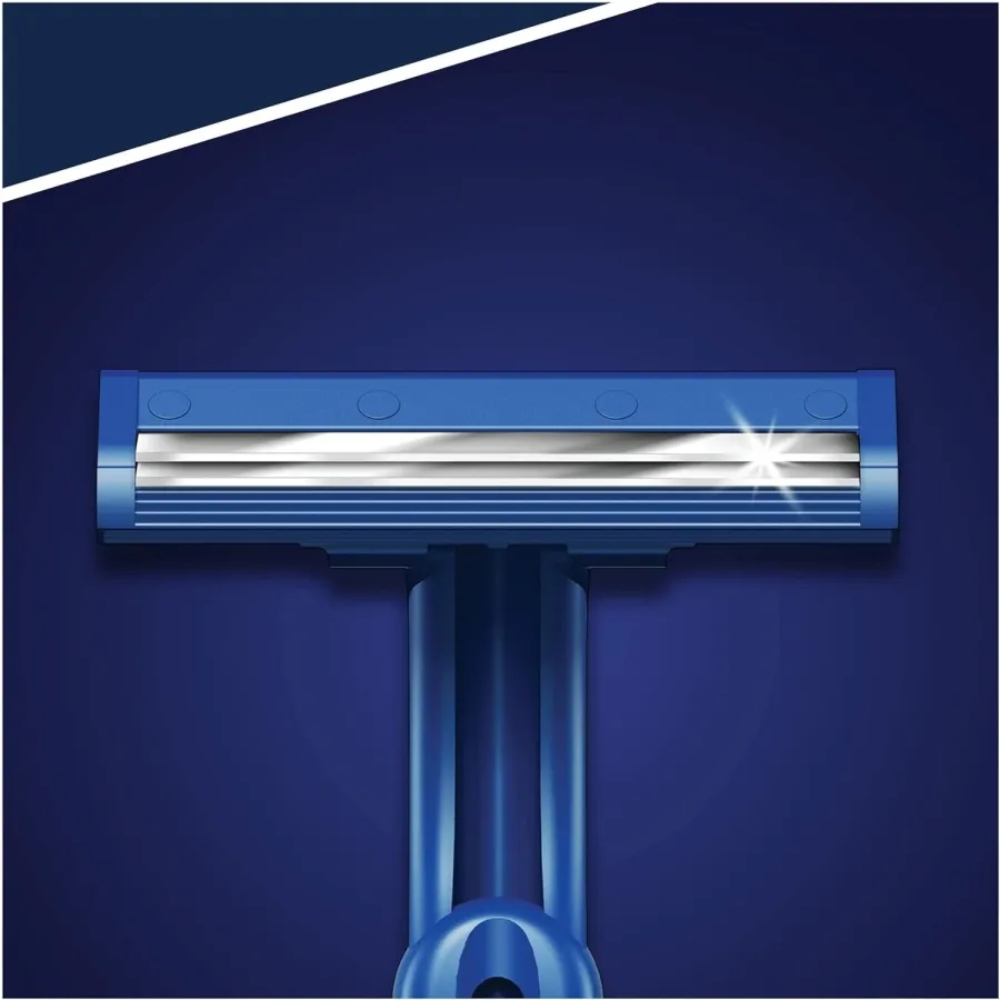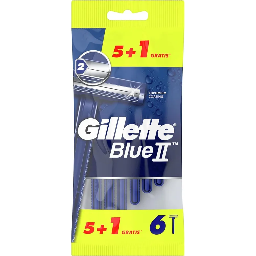 La maquinilla desechable Gillette BlueII tiene dos hojas con revestimiento en cromo que alargan su vida útil. De esta forma, no tienes que cambiar de maquinilla tan a menudo. La maquinilla tiene un cabezal fijo.