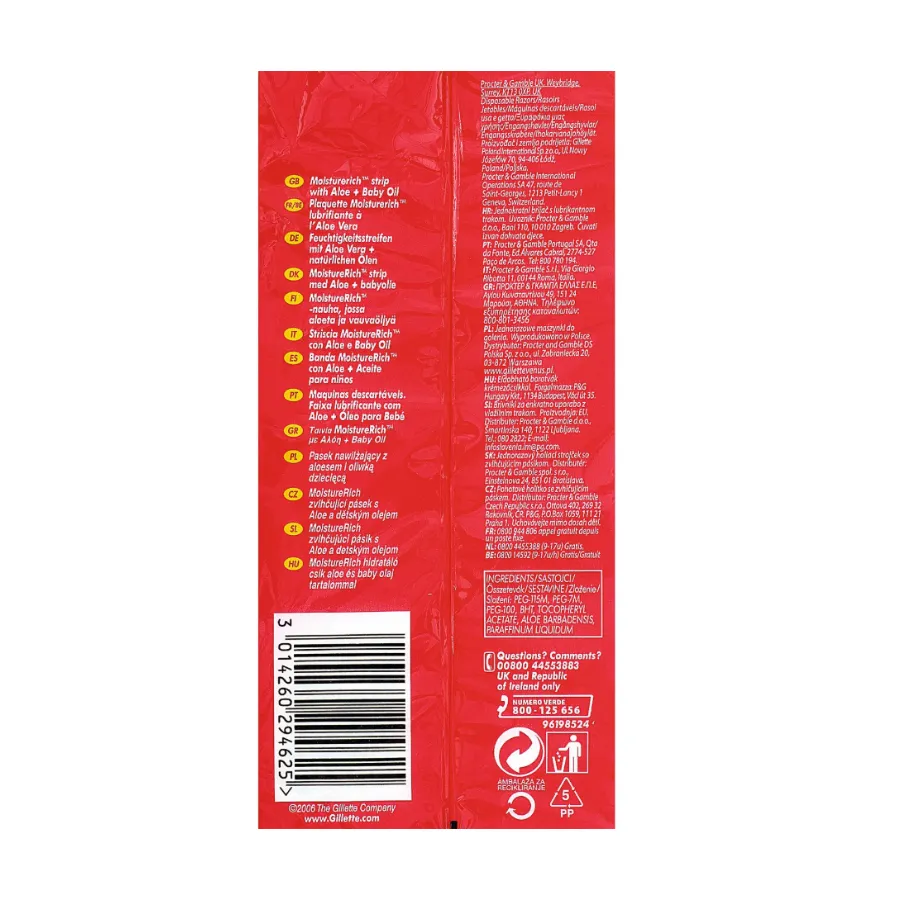 Una de sus ventajas más notables es la banda lubricante activa (tipo Lubrastrip), que se activa con el agua y permite que la cuchilla se deslice suavemente sobre la piel. Esto reduce notablemente la fricción, lo que la convierte en una opción ideal para quienes tienen la piel más sensible.