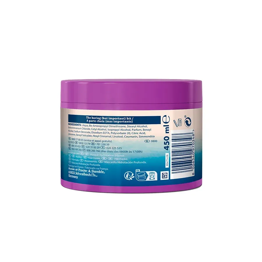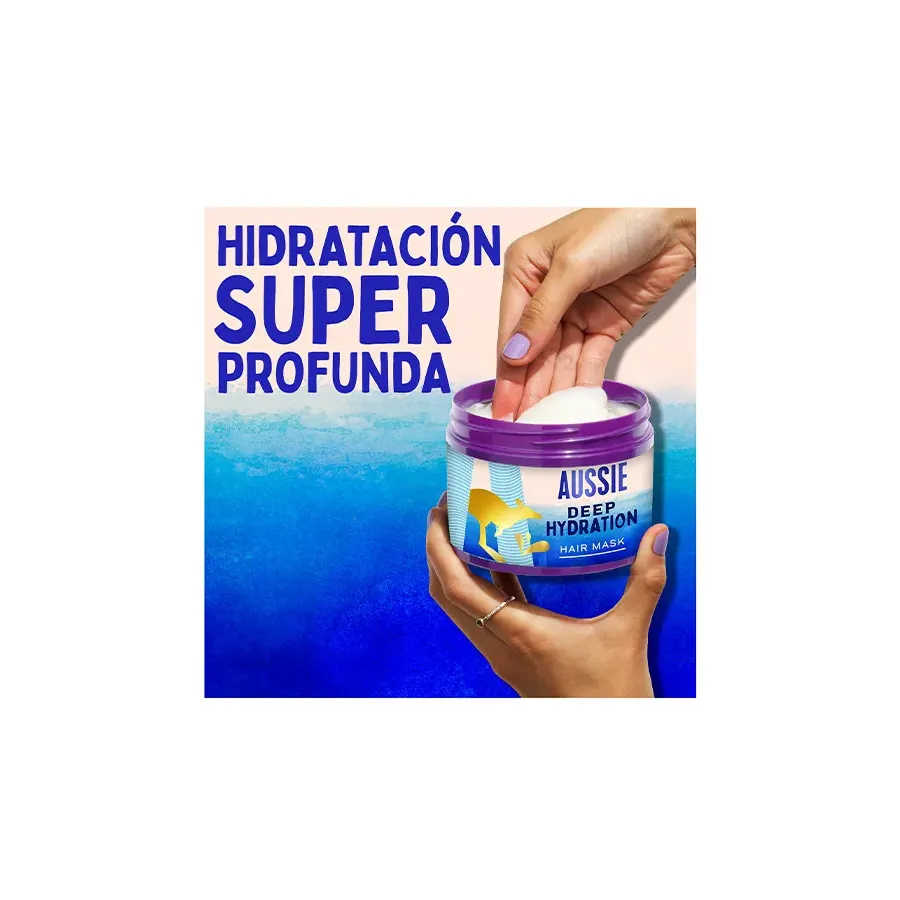 ¿Tu cabello pide ayuda a gritos? Es momento de transformarlo con la mascarilla capilar hidratante Aussie Deep Hydration. Diseñada especialmente para cabellos secos, gruesos, rizados o dañados, esta fórmula vegana y libre de maltrato animal es el cuidado intensivo que tu melena necesita.