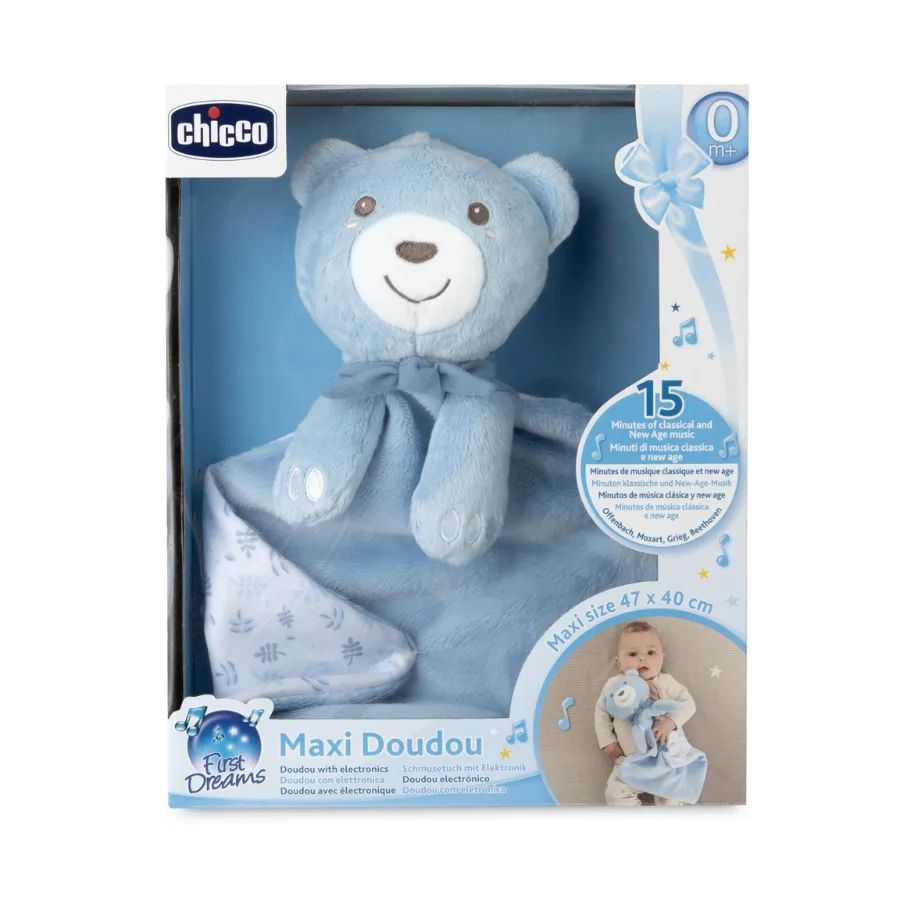 Descubre el compañero de sueños perfecto para tu peque: el Maxi Dou Dou de Chicco, un peluche gigante, musical y lavable diseñado para brindar calma, seguridad y apego desde los primeros meses de vida.