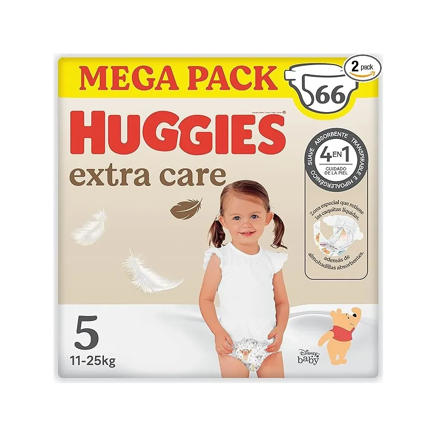 Pañales Mega Pack Extra Care Talla 5 (66 Uds) - Huggies
