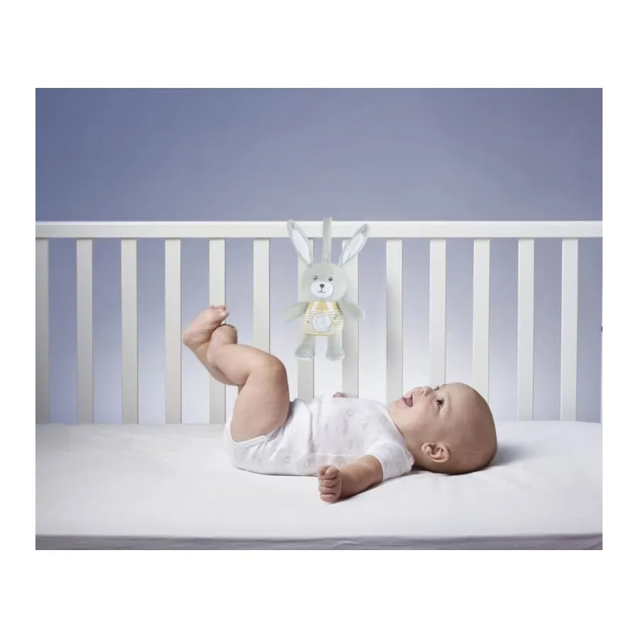 Mi primer Peluche de Chicco están pensados para calmar y relajar al bebé y favorecer el sueño desde el primer día. Apretando la barriguita tiene dos modos de luz suave (fija o intermitente) y 15 minutos de música clásica (Mozart, Beethoven y Glinka).
