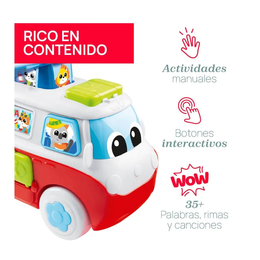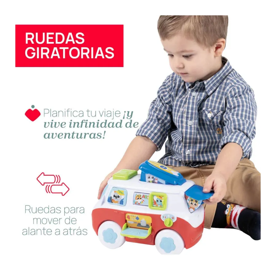 Porque combina lo mejor del juego con el aprendizaje. Esta caravana interactiva infantil bilingüe emite sonidos reales, canciones educativas y frases cortas que ayudan a reforzar la comprensión auditiva y la repetición. Además, su formato de juguete con ruedas permite que el niño la empuje y juegue de forma activa, promoviendo también la motricidad.