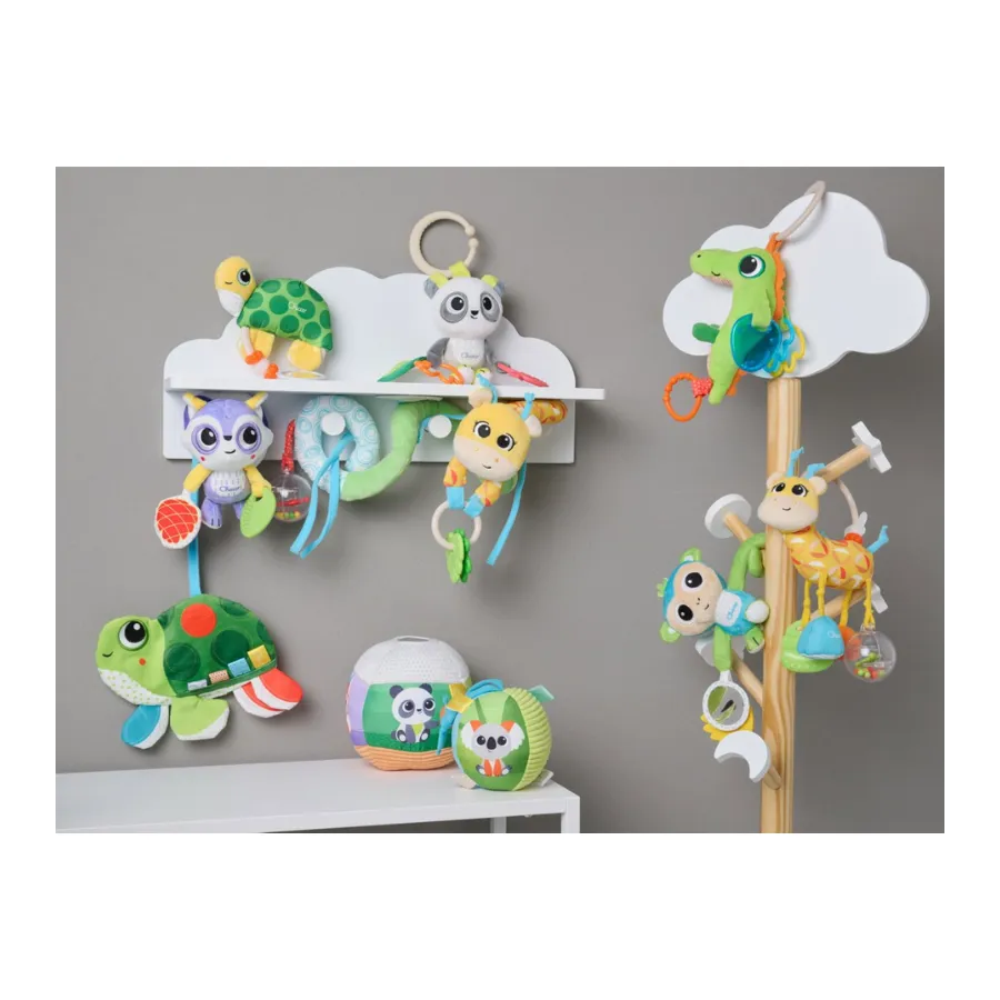 Con sus colores suaves, etiquetas de diferentes texturas y sonido integrado, esta tortuga es perfecta para que tu pequeño desarrolle su percepción sensorial. Además, su tamaño compacto la convierte en la compañera ideal para llevar en el cochecito, la cuna o en los paseos diarios.