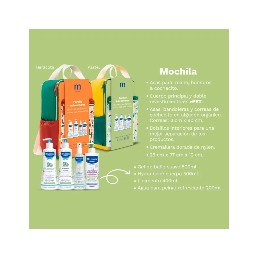 La Mochila Family Adventures con productos Bio de Mustela incluye: