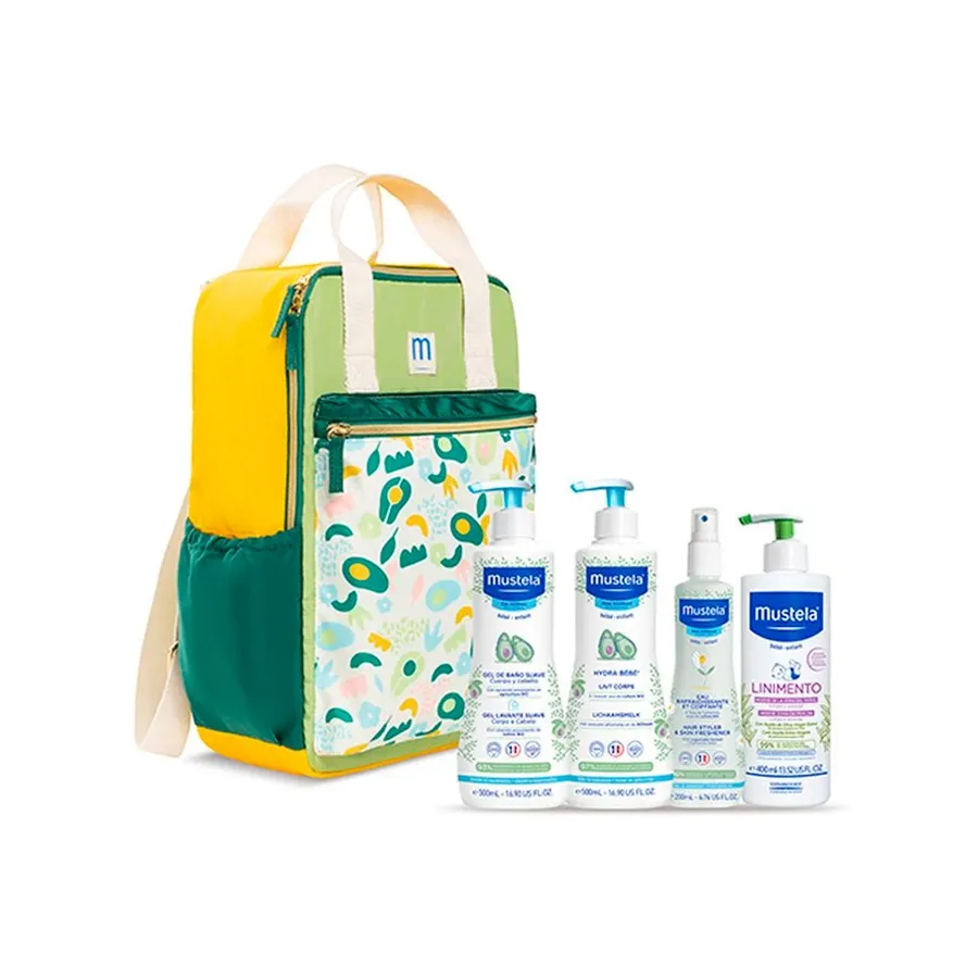 Esta preciosa mochila de Mustela es la aliada perfecta para acompañar a la familia en todas sus aventuras. Contiene 4 productos esenciales, con un 96% de ingredientes naturales, para la higiene y cuidado de la piel del bebé y cuenta con mucho espacio para guardar sus cositas cómodamente.