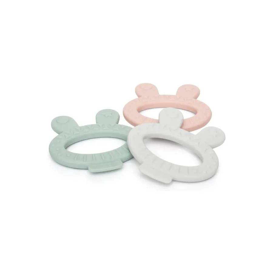 Con materiales de alta calidad, el mordedor es fabricado enteramente de silicona, sus burbujitas de goma masajean las encías y contribuyen a la erupción de los nuevos dientes.