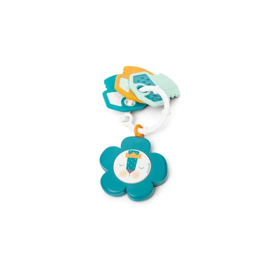Además, estimula la curiosidad del bebé con una suave y agradable función musical que se activa en su botón central. Con diferentes llaves en preciosos colores unidas por un anillo central.