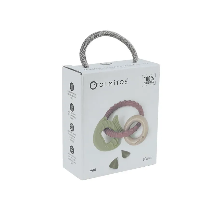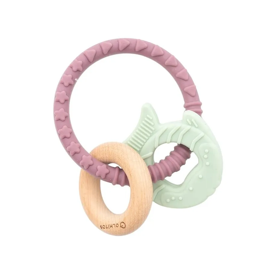 El mordedor de silicona y Haya Fish de Olmitos ha sido pensado para aliviar eficazmente las encías doloridas por la dentición. Está elaborado con silicona suave, resistente, flexible e higiénica, que minimiza la proliferación de bacterias, y madera de Haya. Al morderlo, la presión ejercida por el bebé sobre las diferentes texturas, calma eficazmente el dolor de las encías inflamadas y activa la sensibilidad con el tacto. La silicona es totalmente saludable para el bebé y está libre de BPA, BPS, ftalatos, PVC y plomo. Diseñado para un fácil manejo con manos pequeñas, favorece la motricidad fina y la coordinación mano boca. Muy fácil de limpiar con agua y jabón. Disponible en dos preciosos colores: Verde y Rosa