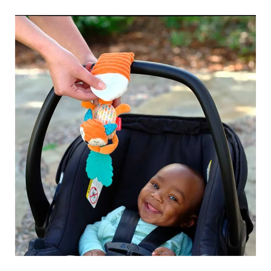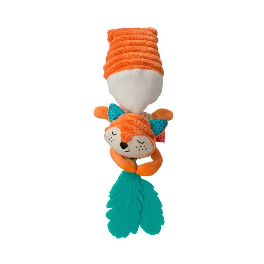 Precioso Mordedor Suave de Zorro de Infantino, de suave tacto, con un fantástico mordedor texturizado en forma de plumas ayudará a calamar las doloridas encías de tu peque. Se puede unir fácilmente a la silla del auto o al cochecito.