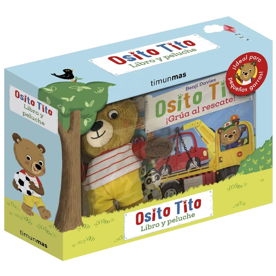 ¡Este pack es el regalo perfecto! Incluye el libro con mecanismos Grúa al rescate y un peluche adorable de Osito Tito.