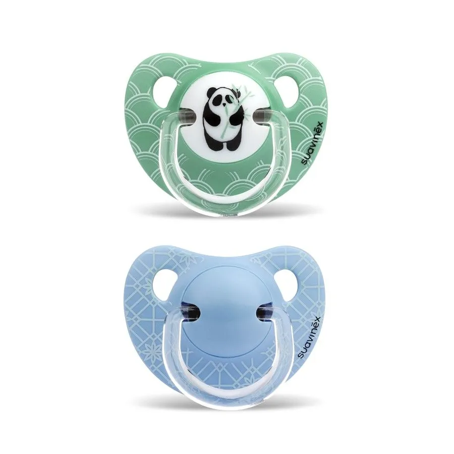 Pack 2 chupetes panda verde y azul 6 a 18 meses, Silicona. Suavinex