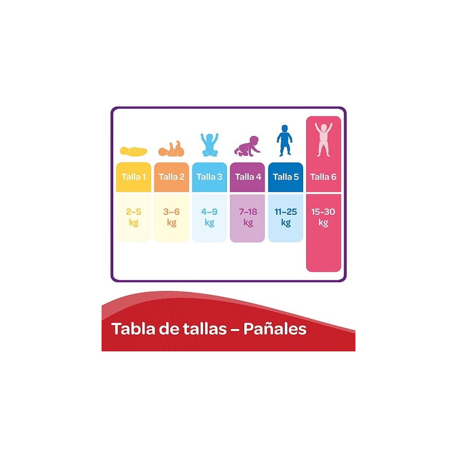 - Talla 6 recomendada para bebés de 15 a 30 kg o en etapa de transición al orinal.