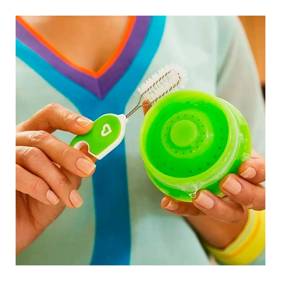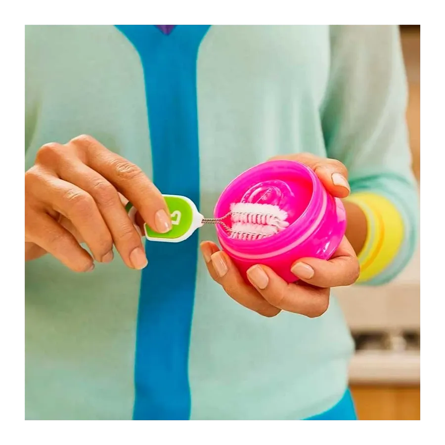 El práctico juego de cepillos de Munchkin, Details™, resuelve todos tus problemas de limpieza. Equipado con cuatro cepillos de tamaño único, limpiarás todas las grietas, sin importar lo pequeñas que sean. El juego de cepillos Details™ incluye un cepillo de pajitas, un cepillo de boquillas, un cepillo de tapas e hilo y un cepillo de detalles. Una ventaja adicional, hay un pico en el anillo de almacenamiento que facilita la extracción de los anillos de sellado. ¡No más residuos o dudas de si tu taza está realmente limpia!