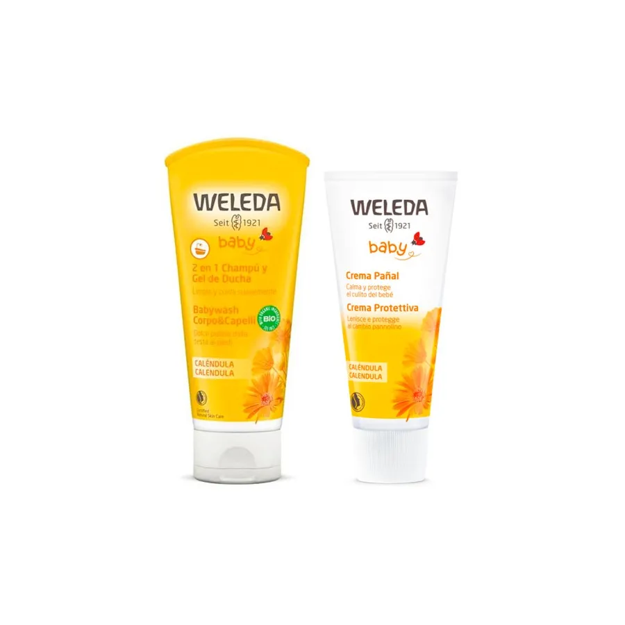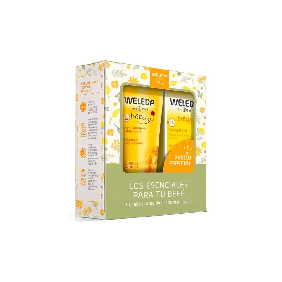 Pack esencial Champú y gel 200ml + Crema pañal Caléndula 75ml .Weleda