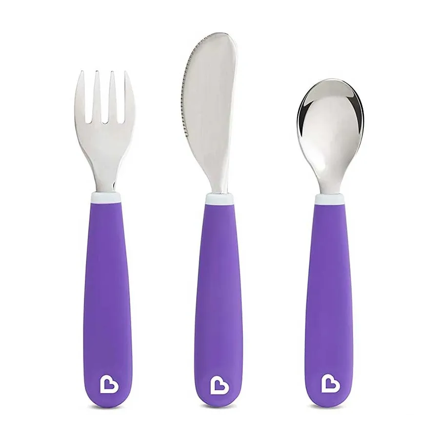 De divertidos colores, consta de un tenedor , una cuchara y un cuchillo , seguro para los niños