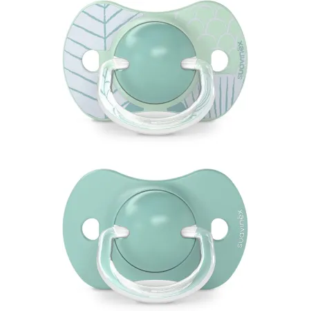 La innovadora tetina fisiológica SX Pro de Suavinex ha sido diseñada por expertos y avalada por la Sociedad Española de Odontopediatría para minimizar el impacto del uso del chupete sobre el desarrollo maxilofacial y bucodental del bebé. Gracias a su forma con cabeza más corta, simétrica y plana y su cuello más ancho y fino, permite al bebé mantener la posición natural de la boca durante su uso igual que si no lo llevase. La silicona empleada de altísima calidad, fina, cálida, muy flexible y con acabado arenado logrando imitar fielmente el pezón materno. Con la succión se adapta a la cavidad oral del bebé sin presionar. Gracias a su forma simétrica el chupete siempre está correctamente colocado en la boquita del bebé, aunque se lo ponga del revés. Más higiénicos y duraderos que nunca.