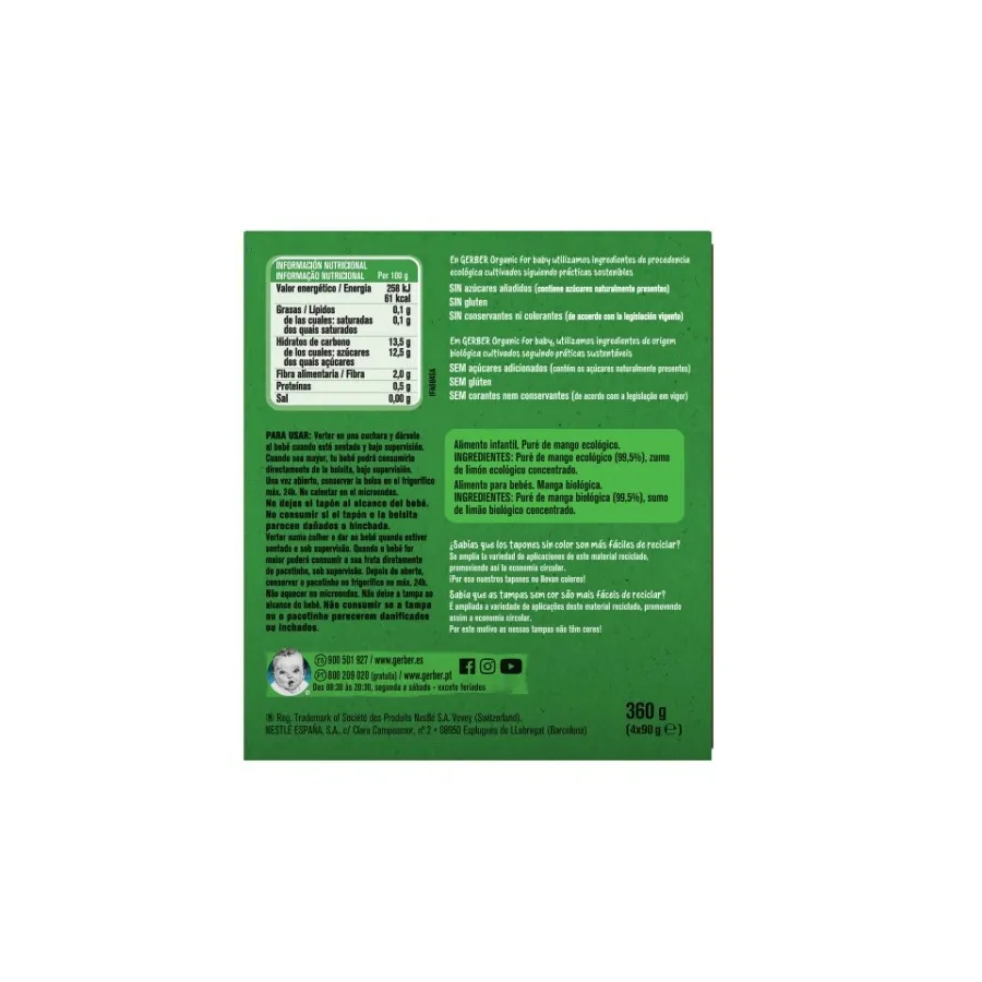¡Descubre el delicioso y nutritivo pack de 4 bolsitas Gerber, una opción ideal para la alimentación de tu bebé! Cada bolsita contiene una mezcla sabrosa de pera, manzana y plátano, cuidadosamente elaborada para ofrecer una experiencia de sabor única y saludable.