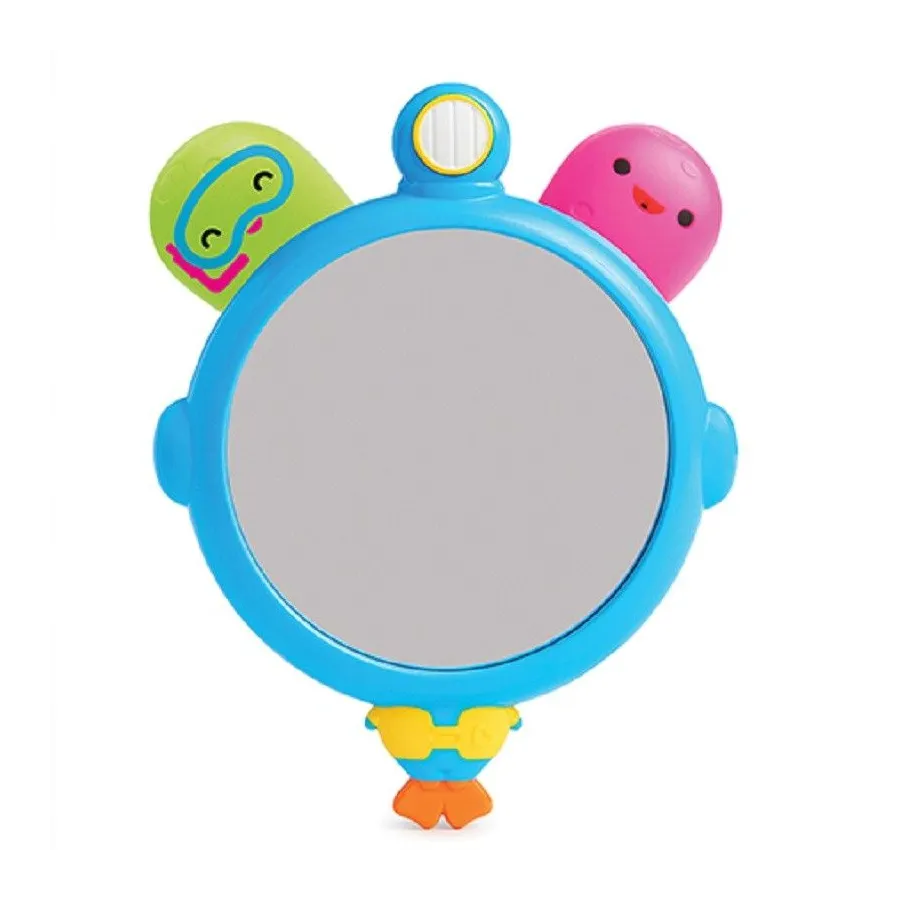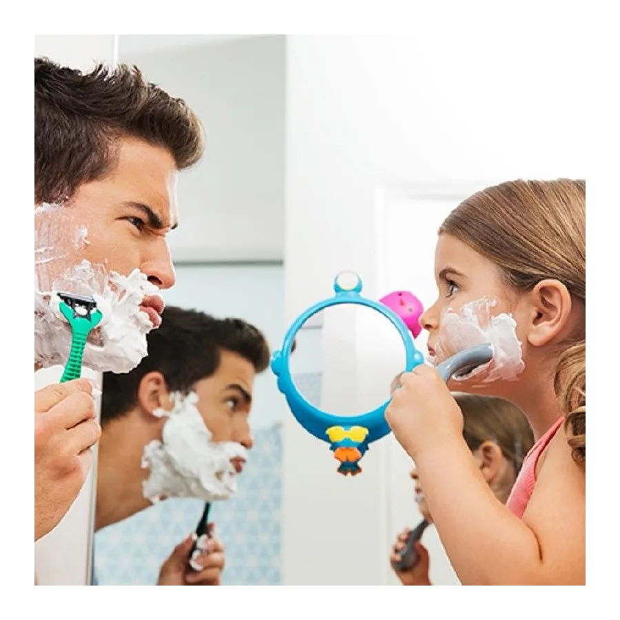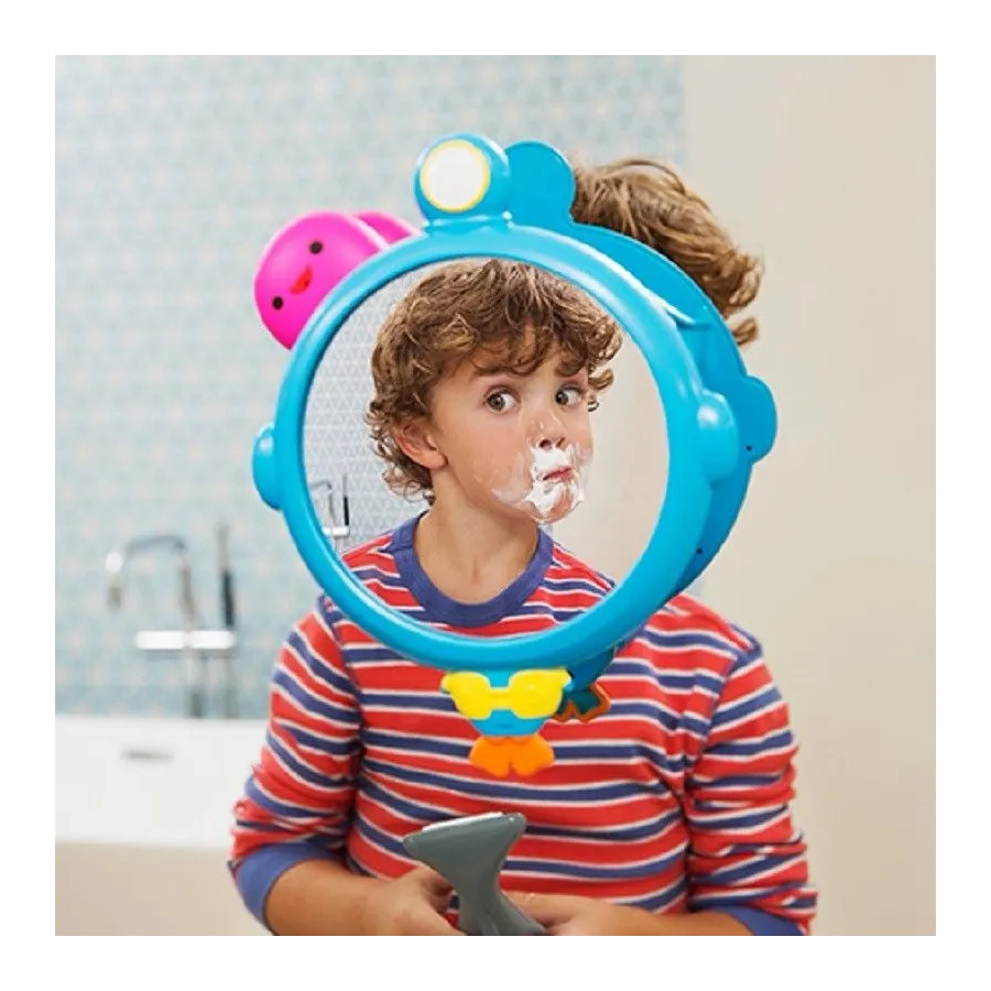 El espejo es apto para la bañera, facilita la interacción y el autodescubrimiento: crea un cresta con jabón fresco, una barba con espuma y mucho más.