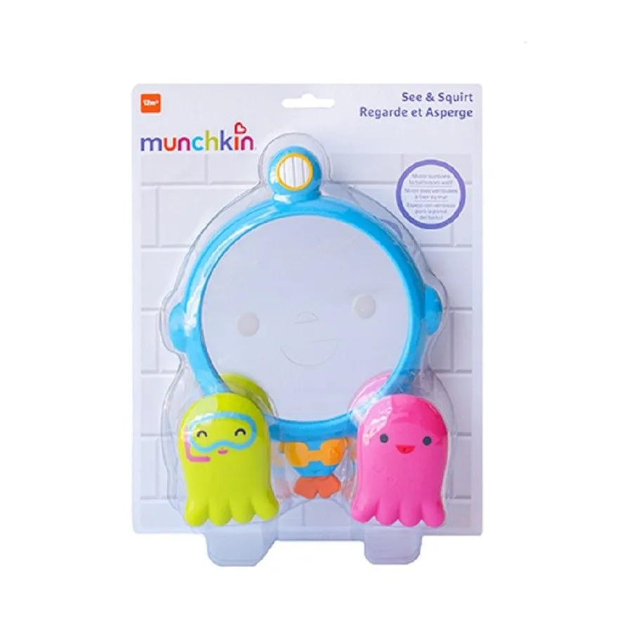 Este precioso pack de Munchkin compuesto por un espejo Clear-Sight ™ y dos juguetes lanzachorros con forma de pulpo.