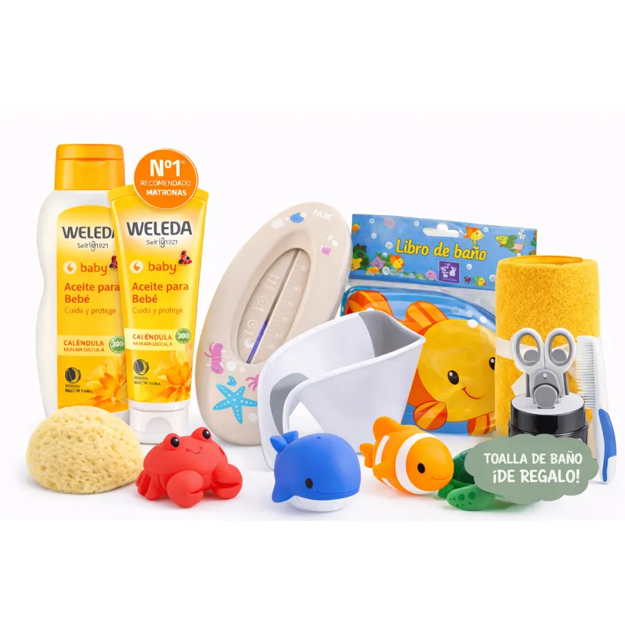 Incluye productos Weleda Baby Caléndula, formulados con ingredientes de origen natural para proteger y respetar la piel sensible del bebé. La caléndula BIO ayuda a calmar y mantener la piel suave e hidratada.