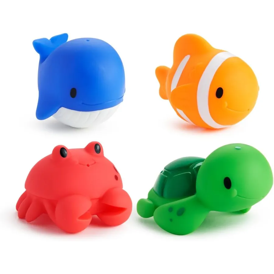 🌊 Juguetes de baño Ocean de Munchkin, divertidos personajes acuáticos que flotan, estimulan la imaginación y hacen del baño un momento aún más entretenido.