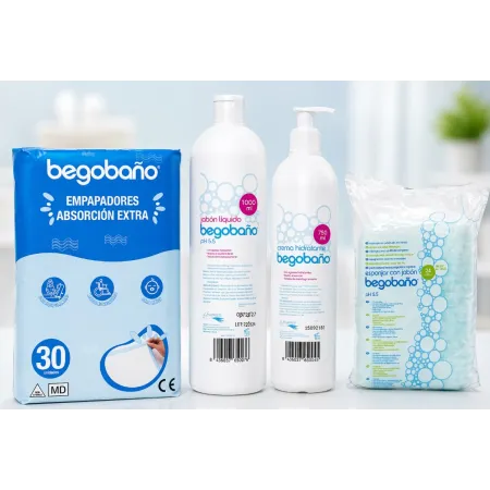 Pack Súper Ahorro Begobaño | Empapadores 60x90 + Jabón pH 5.5 + Crema Hidratante + Esponjas con Jabón