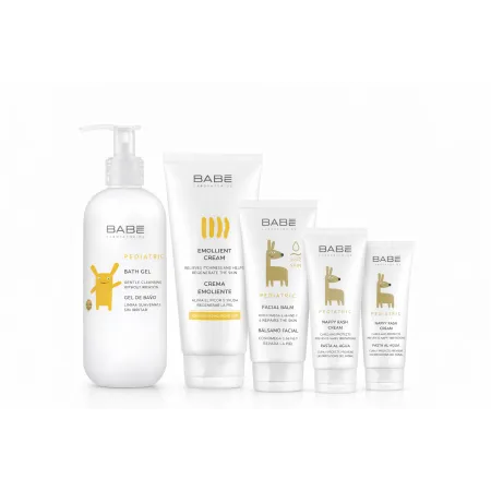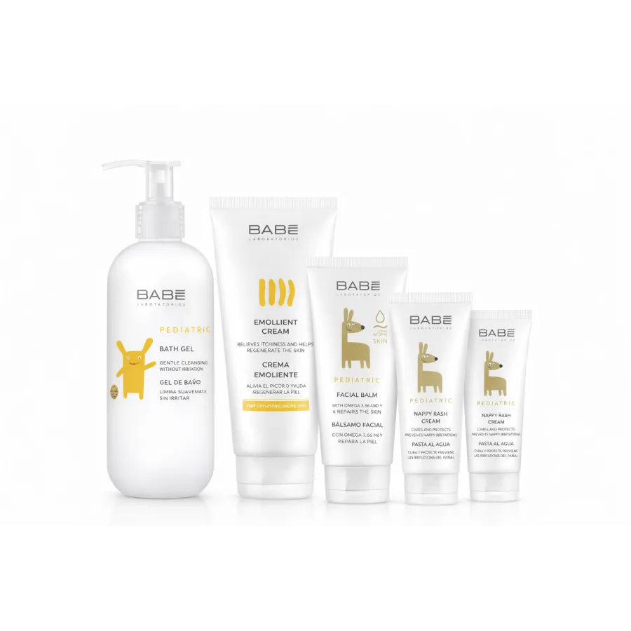 El Gel de Baño Pediatric Babé (500 ml) limpia suavemente la piel del bebé sin irritarla, respetando su equilibrio natural. El Champú Extrasuave Pediatric (200 ml) limpia el cabello y el cuero cabelludo delicado sin picar en los ojos. La Crema Emoliente (200 ml) hidrata intensamente y ayuda a aliviar la sequedad y el picor de la piel sensible o con tendencia atópica.