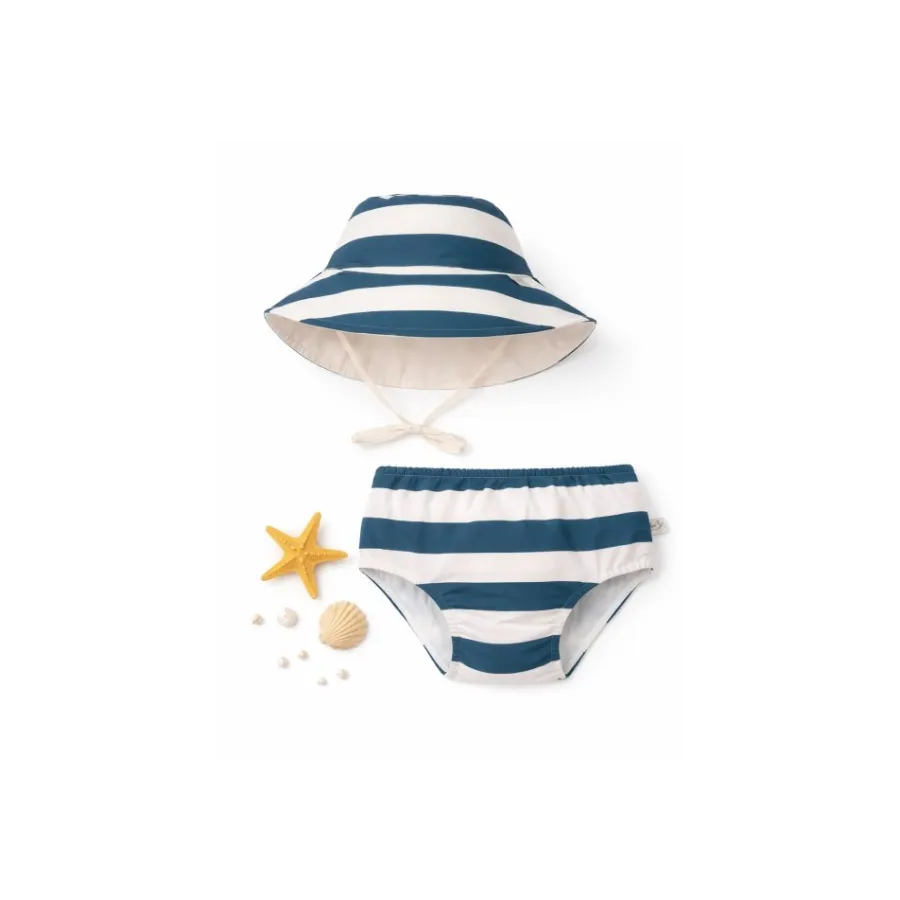 Pack Súper Ahorro pañal bañador + gorro pescador (7-12 meses) Rayas Lässig con protección solar