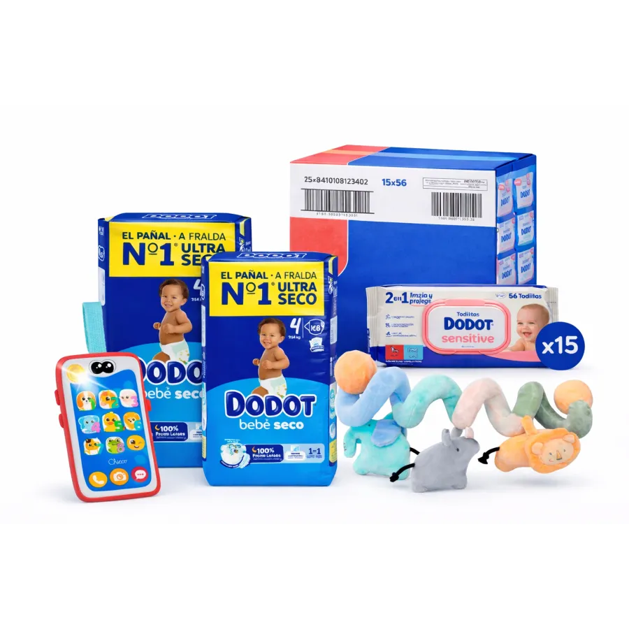 Pack Súper Ahorro: Pañales dodot Talla 4 + Toallitas + juguetes