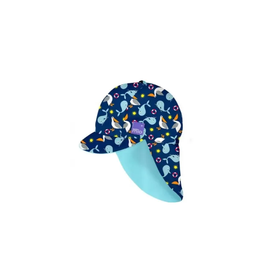 El pack incluye además el gorro reversible Bambino Mio, diseñado para proteger cabeza, cara y cuello con protección UPF 50+. Su tejido ligero, transpirable y de secado rápido garantiza comodidad durante todo el día.