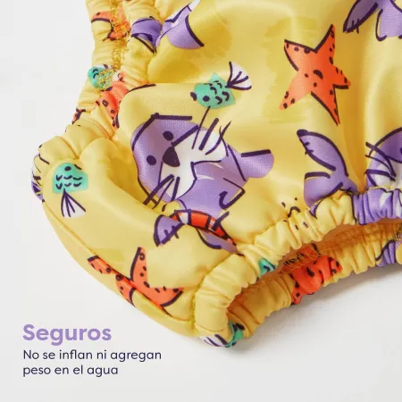 Gracias a su capa impermeable y cintura ajustable, es un pañal bañador muy cómodo de usar para tu peque y muy fácil de poner y quitar para ti.
