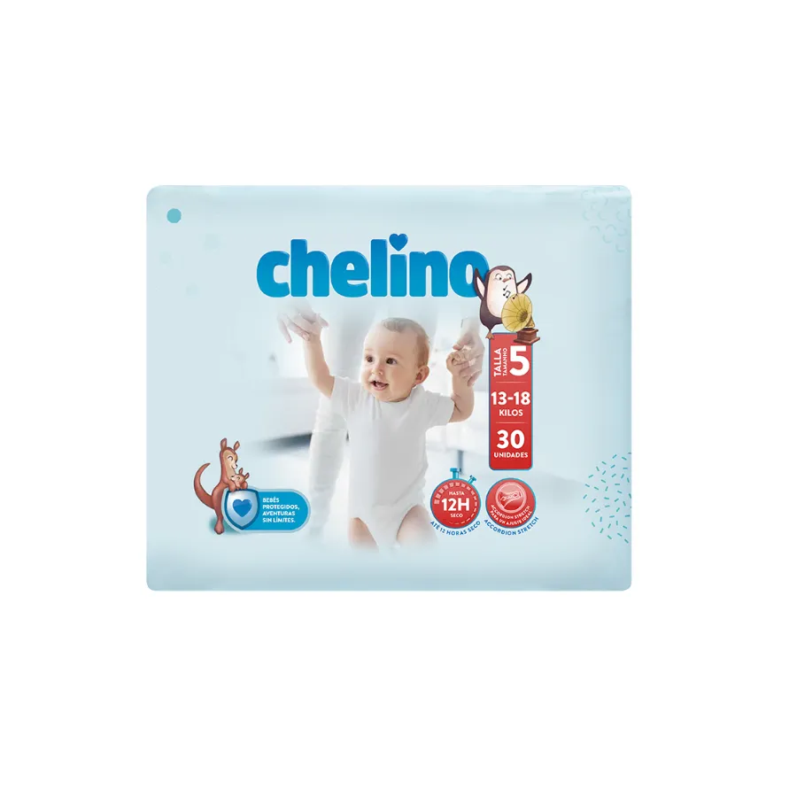 Pañales Chelino Talla 5 para bebés entre 13 y 18 kg.