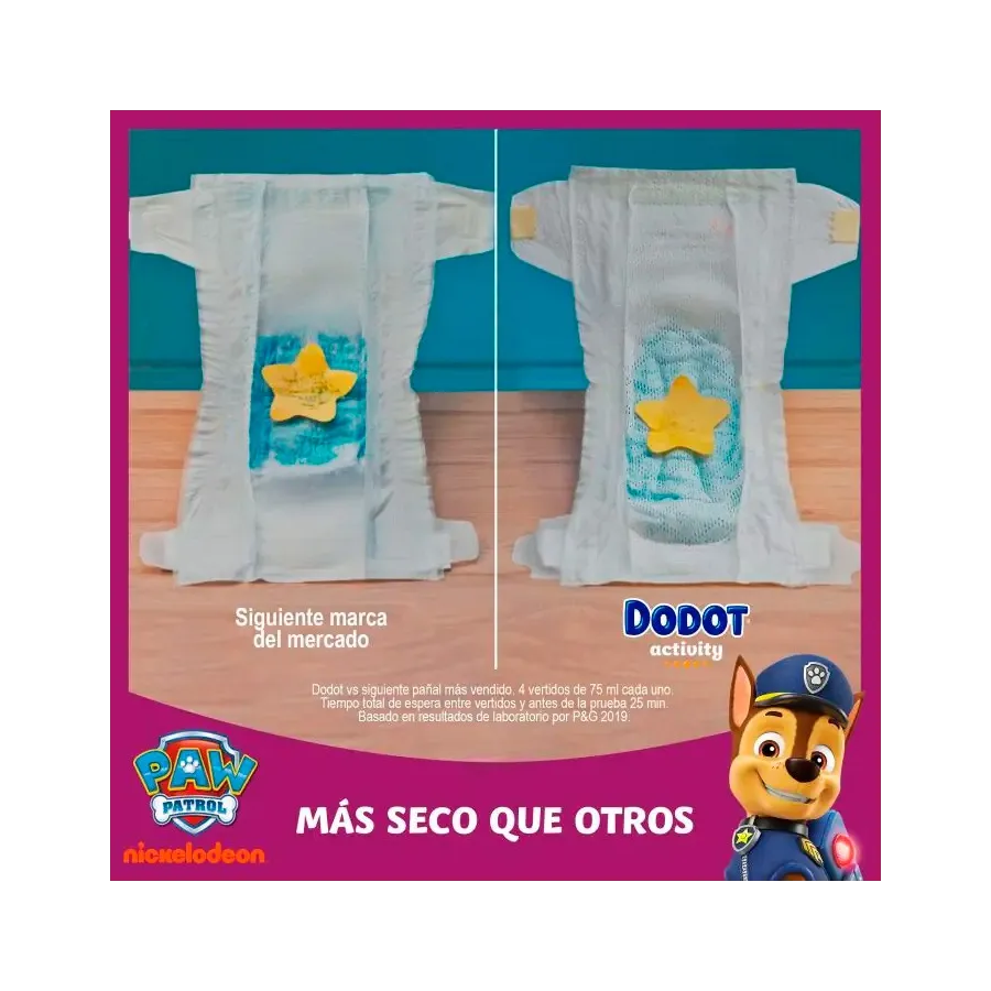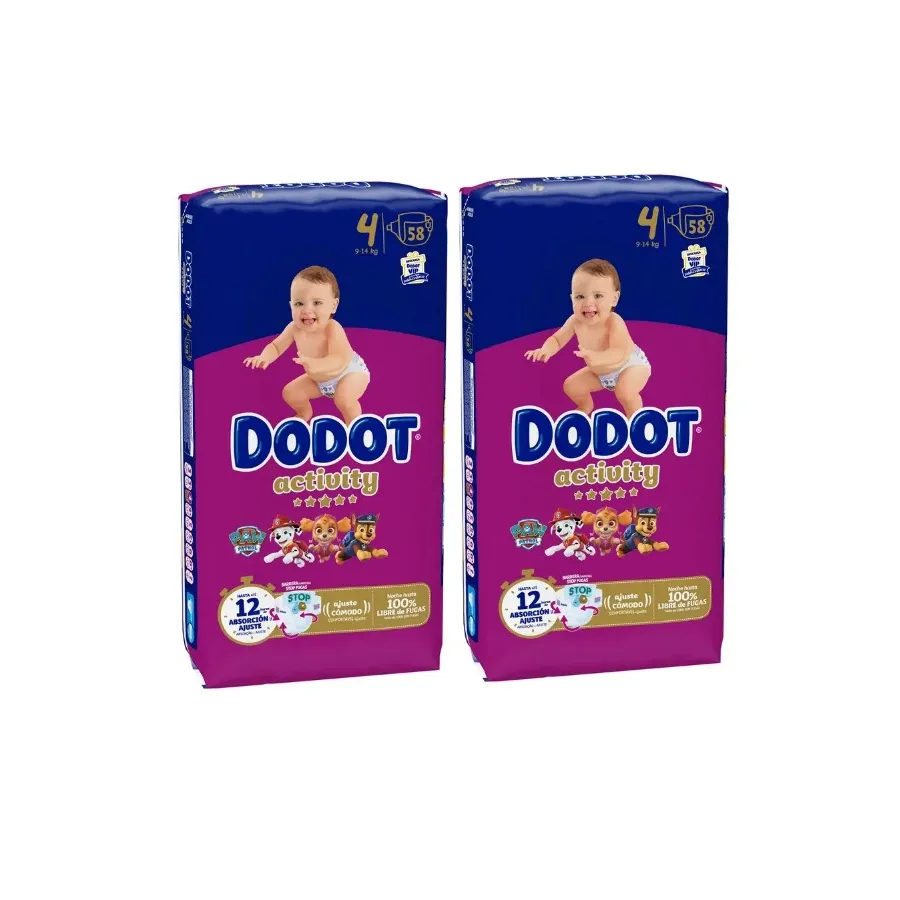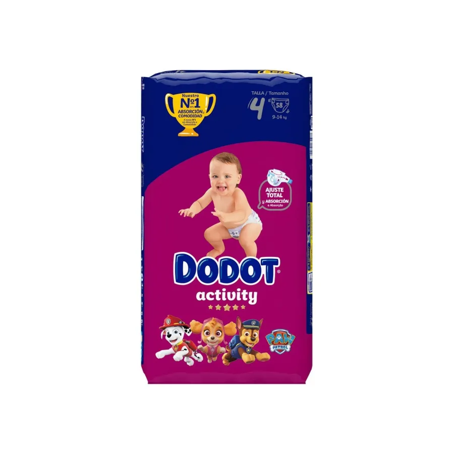 Pañales Dodot Activity Talla 4 (9 kg a 14 kg) estos pañales son perfectos para la etapa de crecimiento en que tu pequeñín comienza a moverse solo por la casa. Con Dodot Activity le brindarás la mayor comodidad y confort para que viva miles de aventuras sin que nada lo detenga. Gracias a sus tubos ultra absorbentes que ayudan a distribuir el pis evitando que el pañal cuelgue y a su exclusiva suave capa absorbente e indicador de humedad, serán tus perfectos aliados.