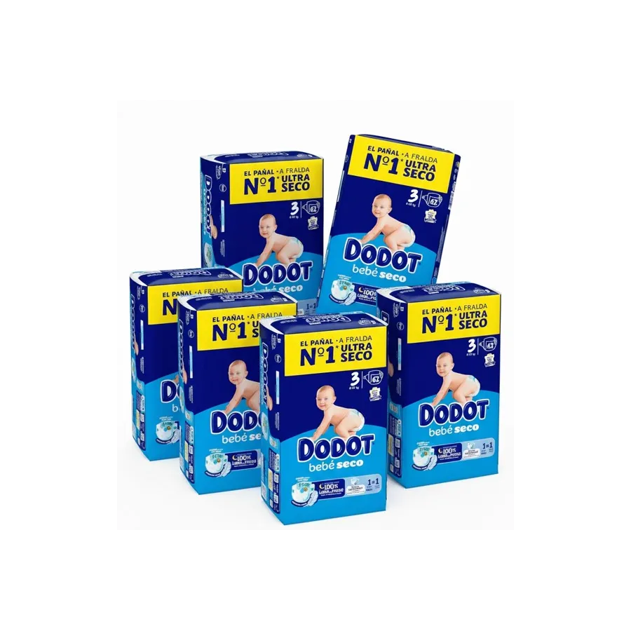 Pañales Dodot Bebé Seco Talla 3 – Pack Súper Ahorro 372 unidades (6×62)