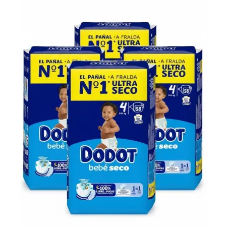 Pañales Dodot Bebé Seco Talla 4 – Pack Súper Ahorro 232 unidades (4×58)