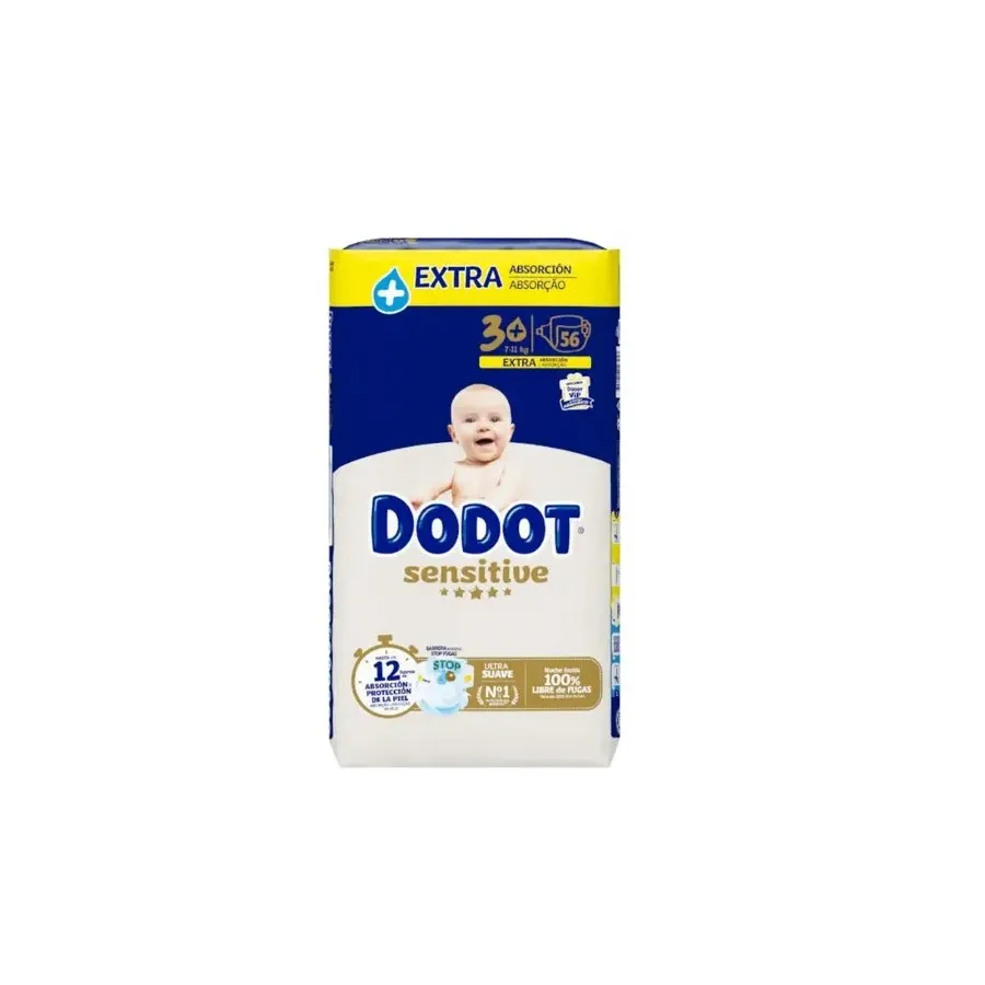 Dodot Sensitive ExtraTalla 3 (7-11 kg) son especiales para bebés de 7 kg a 11 kg. Los pañales fueran diseñados para proteger especialmente la piel sensible de tu peque y facilitar la máxima absorción de pipis y caquitas líquidas.